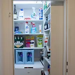 An equipped kitchen is provided at Modern Designer Retreat In Graz Apartment The apartment is situated merely 1.6 km from Graz Central train station and just around the corner from Eggenberger Allee / tim bus station.